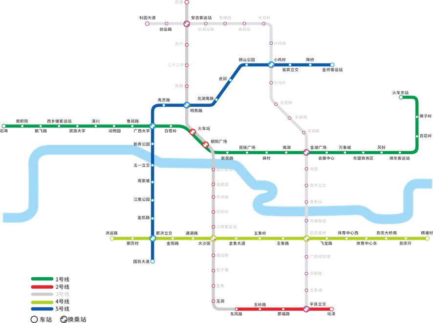 S++站點:萬象城、朝陽廣場、金湖廣場 、火車東站、廣西大學(xué) S站點:埌東客運站、南湖、麻村、新民路、動物園 A++站點:百花嶺、鳳嶺、白蒼嶺、魯班路、清川、西鄉(xiāng)塘客運站、民族大學(xué)