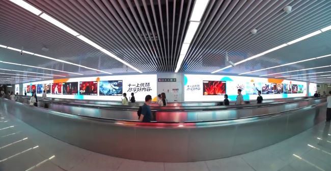 杭州地鐵創(chuàng)景路站A出入口通道墻面超長(zhǎng)LED大屏廣告