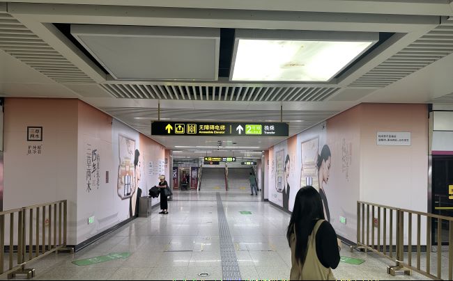 洛陽地鐵解放路站換乘通道兩側(cè)墻貼廣告
