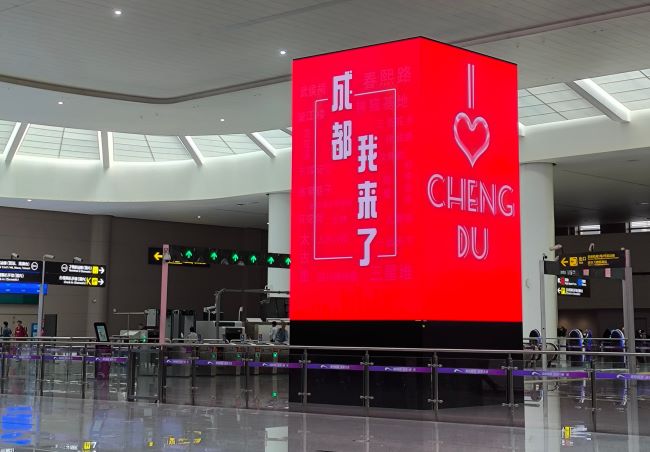 成都地鐵天府機場站LED包柱大屏:空鐵聯運的視覺焦點