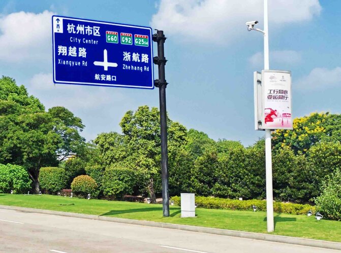 ?杭州蕭山機(jī)場廣告投放案例圖-戶外路燈桿燈箱