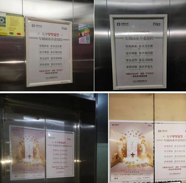 太平人壽湖北分公司通過進(jìn)行武漢電梯廣告的投放,宣傳太平人壽專屬養(yǎng)老保險(xiǎn)產(chǎn)品“歲歲金生”產(chǎn)品。