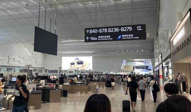 廣州機場T2國內(nèi)出發(fā)安檢區(qū)空中超大墻體燈箱廣告
