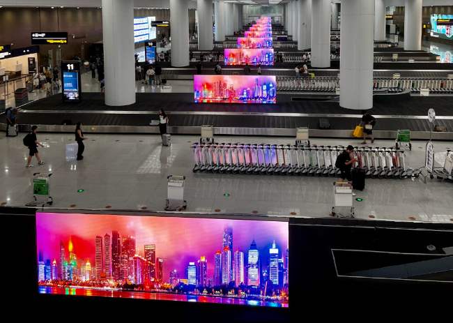 青島機(jī)場(chǎng)到達(dá)大廳行李轉(zhuǎn)盤上方LED大屏廣告