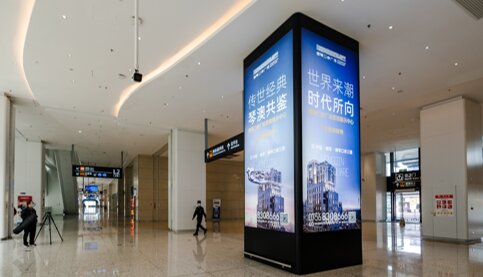 媒體位置:1F珠海-澳門出境大廳外送客平臺(tái)包柱燈箱