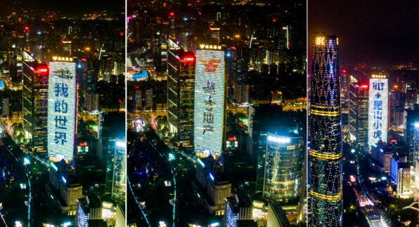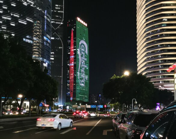 特別說明:廣州越秀金融大廈樓體燈光秀廣告接受粉絲應援、示愛求婚告白等個人投放。