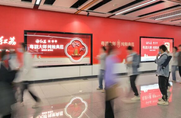 佛山地鐵3號(hào)線大良鐘樓站位于順德區(qū)核心區(qū)域,大良鐘樓、清暉園、順峰山公園等多個(gè)文旅地標(biāo)鄰站分布,生活配套完善,客流密集。本次佛山地鐵廣告案例紅荔酒所在的‘中華老字號(hào)’廣東順德酒廠亦位于大良,選擇客流密集的大良鐘樓站投放廣告旨在讓順德酒廠品牌更快、更大范圍、更精準(zhǔn)觸達(dá)更多的消費(fèi)者,大紅底色配上發(fā)光字的廣告畫面設(shè)計(jì)不僅承載著廣東人記憶的粵酒文化,更是為粵酒發(fā)展注入強(qiáng)勁動(dòng)力與勢能,助力提振粵酒聲譽(yù)。